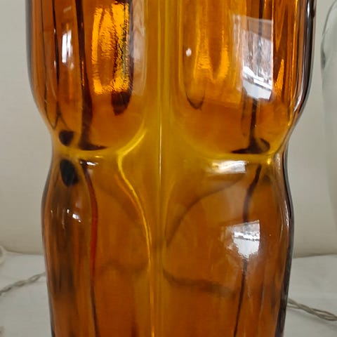 Hyväkuntoinen violetti maljakko, painavaa, paksua lasia.