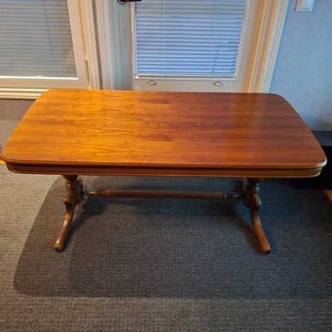7,5 reuna, pöytälevyn paksuus 2,5 cm.