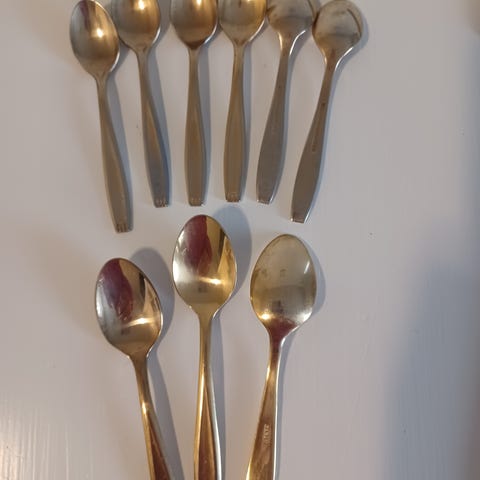 Pikkulusikat 6kpl, pituus noin 10,5cm. Takana teksti "23 karat gold plated Japan".