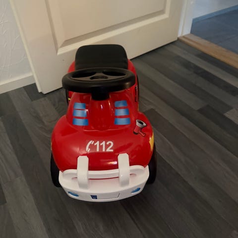 Paloauton mallinen potkuauto, jossa on 2 litran vesisäiliö, mutta veden suihkutustoiminto ei enää toimi. Muuten hyväkuntoinen ja täysin leikeissä toimiva auto. Ollut pelkästään sisäkäytössä. Pieni takaluukku. Eläimetön ja savuton talous. Vain nouto Tuusulasta.