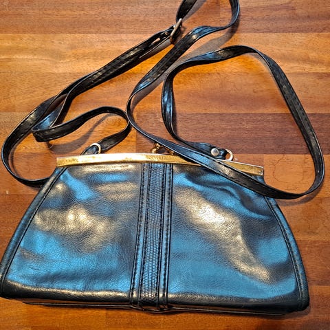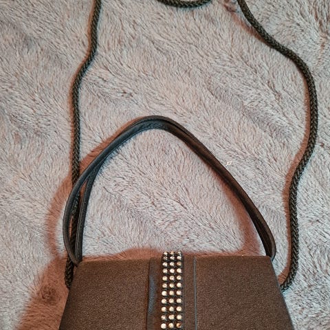 Musta iltalaukku. mittanauha antamassa kuvaa noin mitoista