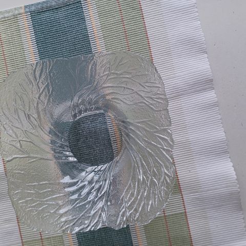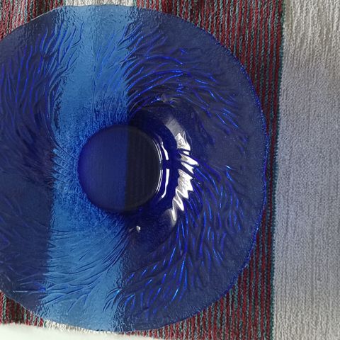 Myydään hyväkuntoinen suomalainen lasikulho. Suunnittelija Pertti Kallioinen. Halkaisija n. 28cm ja korkeus n. 8cm. Ehjä, mutta pientä naarmua tullut käytössä (eivät juuri erotu kuvasta). Pieni värivirhe (tumma täplä, kuva), jonka huomasin vasta äsken, joten ei erotu käytössä. Meillä ollut hedelmävatina. Haku Ritaharjusta tai postitus ostajan vastuulla. MMM