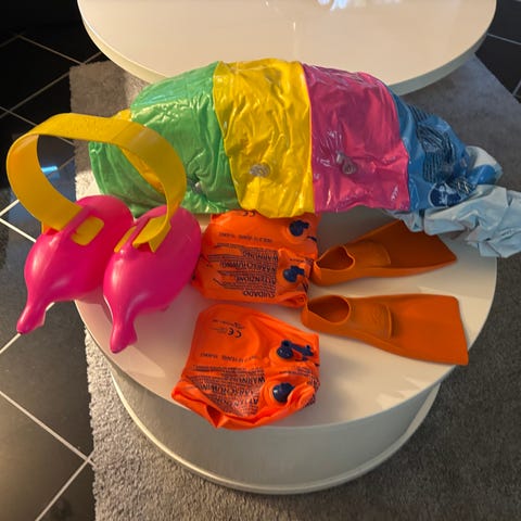 Säädettävät uimaräpylät. Olleet meillä käytössä noin ekaluokkalaisesta alkaen ja säätöä riittää pienikokoiseen aikuiseen saakka. Näillä saa hyvin potkuihin voimaa ja onnistumisen tuntemuksia, jotta uinti sujuu paremmin myös ilman räpylöitä. Ei vikaa, säätöremmit kunnossa.