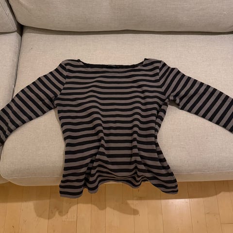 Puseropaljoudesta myyn mustaharmaan Marimekon trikoopuseron.