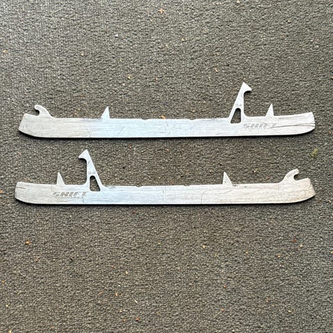 Myydään kahdet maalivahdin luistinten terät. Mustat terät on zero blade maalivahdin terät koko 9