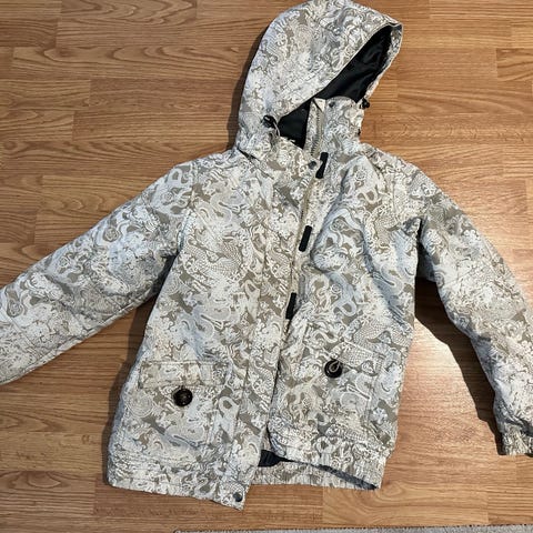 näyttävä ja hauska takki, jossa värikäs printtikuviointi ja lämmin vuori. Koko 160. Takki on ollut käytössä vain pari kertaa, joten se on erinomaisessa kunnossa – lähes uudenveroinen.