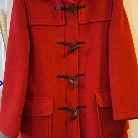 Kuvan aamutakki, koko M, 100% polyesteriä, käytetty mutta vielä hyvässä kunnossa.