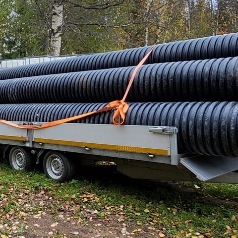Rumpuputkia, sadevesiputkia ja sadevesikaivoja. Pituus 6 metriä. Hinnat:100 mm 35 e/kpl, 150 mm 65 e/kpl, 200 mm 85 e/kpl, 250 mm 100 e/kpl. 300 mm 130 e/kpl. Sadevesikaivot: kaivonrengas 60 e/kpl, supistuskaartio 50 e/kpl.