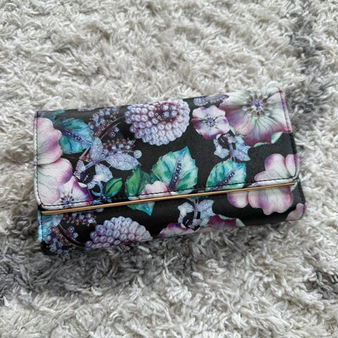 Lompakko olkahihnalla. Mittanauha antamassa kuvaa noin mitoista