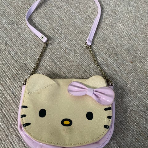 Hello Kitty kangaskassi, jossa on vaaleanpunainen väritys ja olkahihna. Koko 18🤸20 cm. Oikeassa alakulmassa pieni tahra. Sen takia kunto kohtalainen. Sisällä kassi on puhdas. Kassi on valmistettu kankaasta ja siinä on kuvituksena Hello Kitty -hahmo.