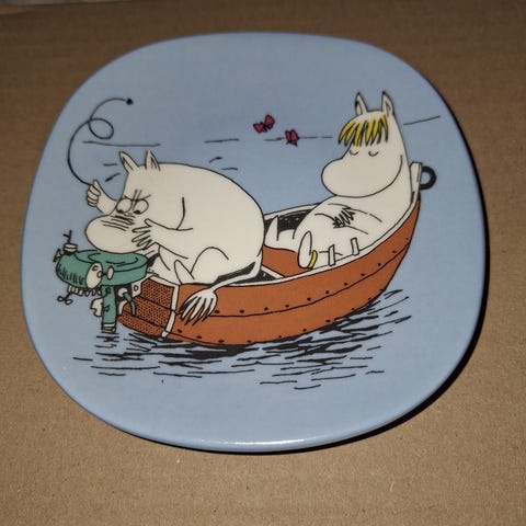 Arabian valmistama ja Tove Slotte-Elevantin suunnittelema Muumi seinälautanen Moottoriongelmia.