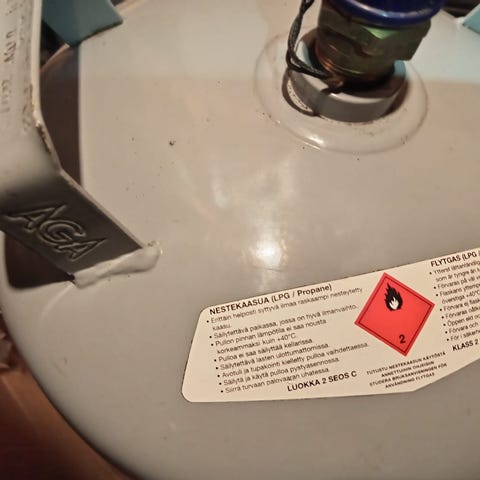 Käytetty teräspullo 5kg. Sisältää jonkin verran kaasua.