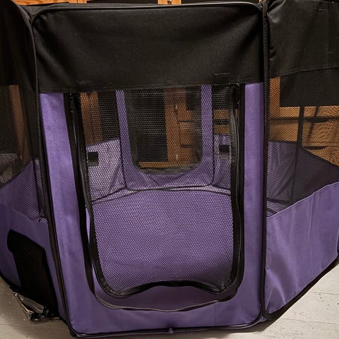 Tosi kätevä pentulaatikko. Helppo kasata ja purkaa ilman työkaluja. Toimii hyvin kissoille ja pienille koirille. Kissanpennut muutti emoineen ulos laatikosta, vaikka pennut vasta kuukauden ikäisiä. Ulkomitta n. 90 cm ja sisämitta n.80 cm.