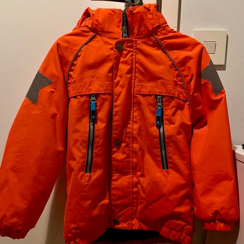 Molo pojan kevyempi toppatakki. Kokoa 116 ja vastaa hyvin kokoaan tai on hitusen reilumpikin.