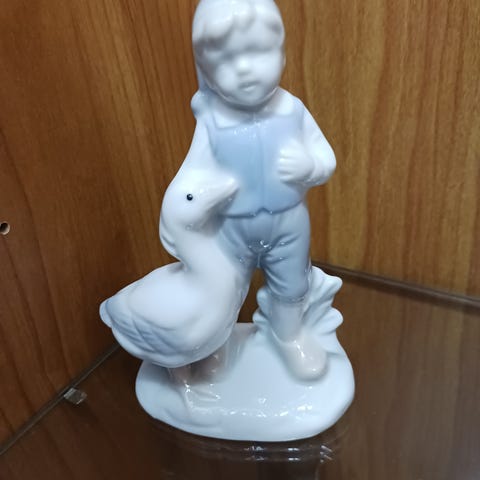 Hieno , Hyväkuntoinen pieni , noin 9 cm korkea ja 5,5 cm leveä ja 3 cm, figuriini posliinia, Massaan painettu JAPAN. ikää en tiedä mutta aika vanha on. Käsin maalattu ja koristeltu kultauksin.