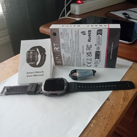 Hyvässä kunnossa oleva aktiivi älykello latureineen