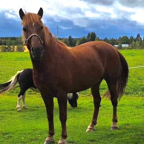 Mietinnän jälkeen myyntiin tällainen kymmenvuotias siro eestinponitamma. Kaunis, musta tähtipäinen poni, jolla komeat jouhet. Tullut Suomeen nyt kesällä 2025 Virosta, ei mitään tiedossa olevia terveysongelmia. On laiduntanut normaalisti, pysyy hyvin langoissa, ei hankaa. Hyvä kuljettaa, menee traileriin nätisti. Kiltti luonteeltaan, ei pure tai potki. Hieman herkkä on ja jotkut jutut tarvitsee vielä vähän totuttelua, hoitotoimenpiteissä saattaa olla vähän arka ajoittain. Ei siksi minkään aivan arimman ratsastajan käsiin ehkä toimivin. Ei osaa mitään ihmeitä, perusjutut tottakai, meillä ei olla menty muuten kuin maastossa ja vähän kentällä, myös pieniä esteitä vähän hypätty ja kaikessa ratsastuksessa toiminut hyvin. Ei ole siis lähtenyt käsistä tai tehnyt muuta tyhmää. Tomeralle junnulle tai pienelle aikuiselle (kuten minä 40v/165cm/57kg, olen tällä itsekin ratsastanut) oikein passeli poni. Liikenteestä/työkoneistakaan ei ihmeitä ole välittänyt, niitä tässä meillä kulkee ihan vierestä jatkuvasti.