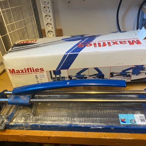 Laattaleikkuri tarpeettomana. Käytetty 1 kylpyhuoneen laatoituksessa. Nyt joutaa seuraavalle.