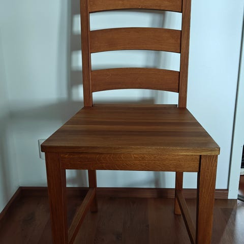 Pentikiltä ostetut tammiset ruokapöydän tuolit. Myynnissä yhteensä 2 kpl.