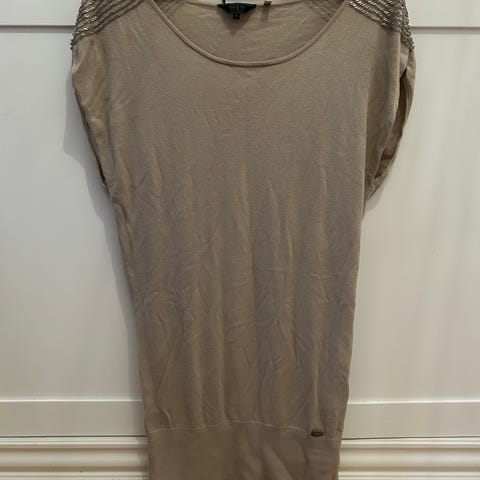 Vain muutaman kerran käytössä ollut Guess mekko, jossa kullanväriset napit hiansuissa. Kaunis, klassinen A-linjainen mekko. Tyylistä riippuen käy arkeen ja juhlaan.