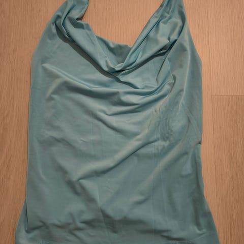 Halter neck niskan takaa solmittava musta mekko, koko S / 36 / 38. Todella kiva malli jossa edessä vatsaa piilottava laskostus. Kankaassa langanvetoja, mutta tästä voisi tehdä vaikka tuunaamalla Halloween mekon.
