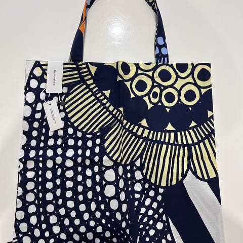 Myydään uusi, käyttämätön Marimekko Siirtolapuutarha kangaskassi.