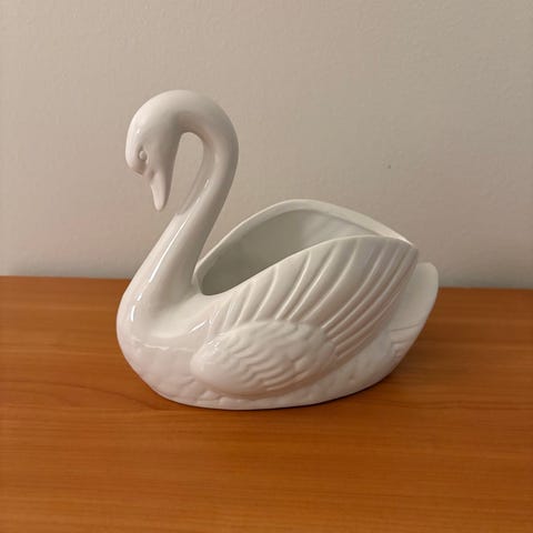 Kerman värinen posliinijoutsen. Korkeus n.15cm.
