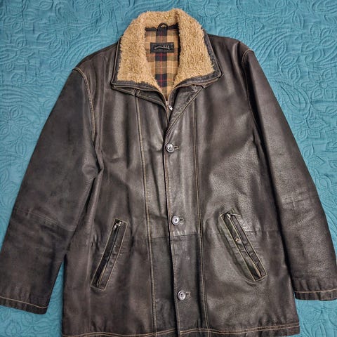 Miesten nahkatakki, pitkä pehmytnahkainen.