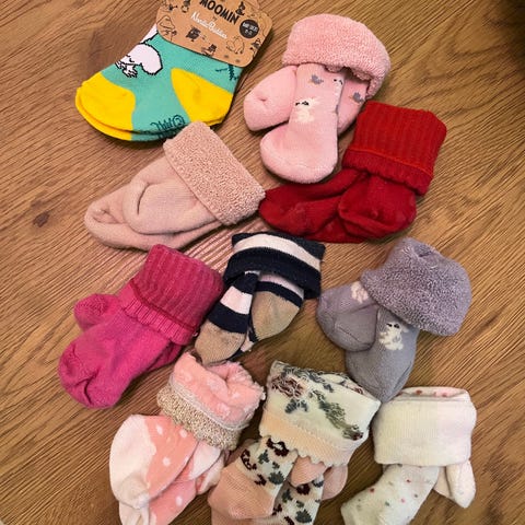 Myydään pakettina 9 kpl vauvansukkia koko 11-14.