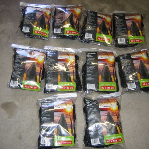Uusia sekä käytettyjä varjostus säkkejä ja verkkoja.