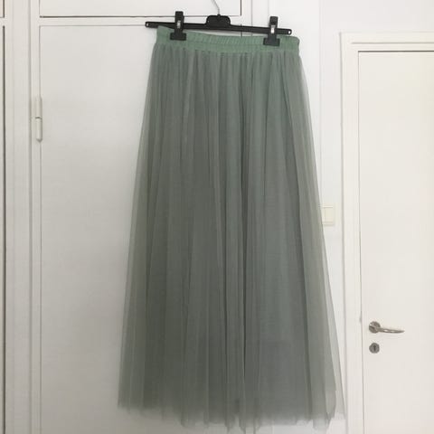 Uusi hame. Polyesteriä, Paksu yksiosainen materiaali, sisäpuoli kuvassa valkoinen. Hinta 15e