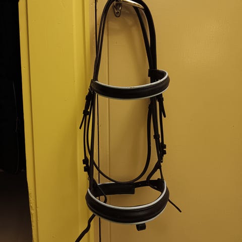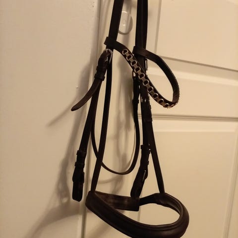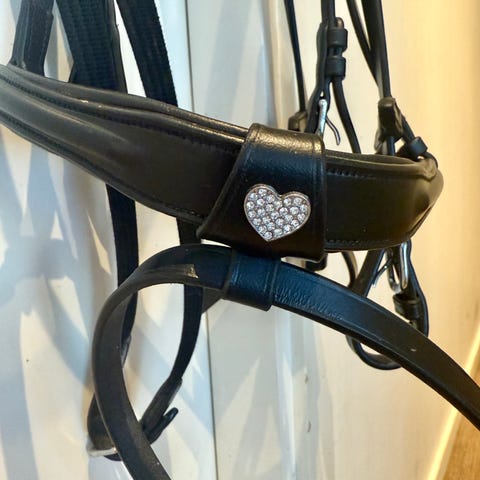 Erittäin hyväkuntoiset full-kokoiset mustat nahkasuitset upeilla barokkisoljilla.