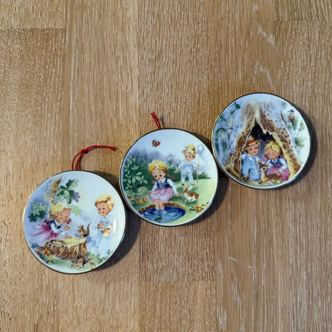 Kuvan mukaiset pikkulautaset. Tehty ilmeisesti vuonna 1955 joksikin juhlalautaseksi. Toinen täysin ilman kuvaa. Myydään vain yhdessä. Jos postitus ostaja vastaa kuluista.