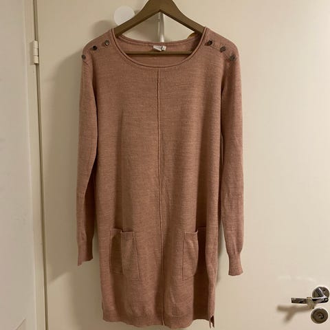 Naisten uusi neulepaita, koko L. Neulepaita on valmistettu neulemateriaalista, jossa on kuvioitu kuosi. Paidassa on puoli pitkät hihat ja pyöreä pääntie.
