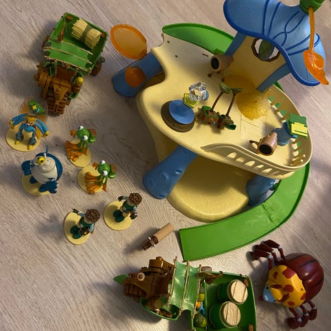 Kuvan hahmot ja tarvikkeet Tree tots puutaloon.
