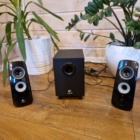 Myydään hyvässä kunnossa oleva Logitech Speaker System Z313 kaiutinjärjestelmä, joka sisältää subwooferin ja kaksi satelliittikaiutinta. Järjestelmä on suunniteltu tarjoamaan ääntä tietokoneille ja muille äänilähteille. Sisältää ohjausyksikön äänenvoimakkuuden säätöön ja liitännät kaiuttimille ja äänilähteelle.