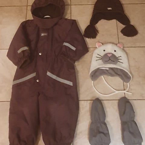 Ehjä ja siisti, vedenpitävä haalari. Irrotettava huppu. Jalkalenksut kuluneet, mutta vielä käyttökelpoiset. Napit löytyy, joten helppo vaihtaa tarvittaessa.