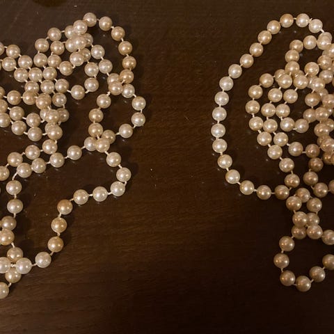 Muovinen punainen & kullanvärinen kaulakoru 50- tai 60-luvulta.