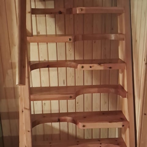 Myydään kokopuiset trendikkäät rimalliset portaat. Helppo purkaa koska ruuveilla koottu. Kun purat itse on portaat helppo jälleen koota. Mitat: portaan leveys 104 cm, kokonaisleveys 221cm, syvyys 255cm ja korkeus sisäkattoon 244 cm ja tasanne 114x210 kokoinen.