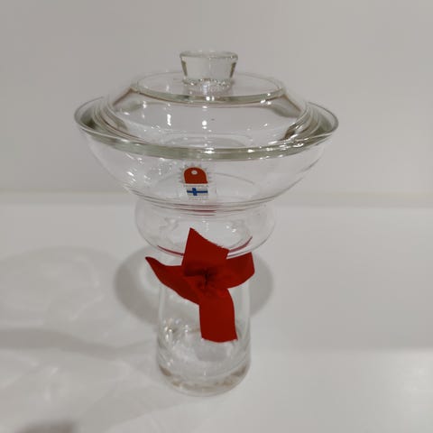 Humppilan Puketti maljakko 1981-1986 kirkas, korkeus 17cm suuaukon halkaisija 12cm.