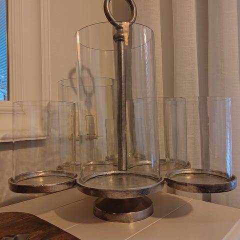 Upea, valtava Hurricane joko kynttilöillä tai kukille ja oksille. Ohutta lasia. Korkeus 37,5 cm ja läpimitta 28 cm. Vain nouto Salon keskusta. Postitus ei onnistu.