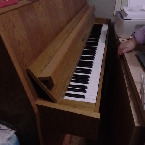 Paljon soitettu piano, ei ole viritetty moneen vuoteen. Viimeksi sai virittäjä helposti viritettyä.