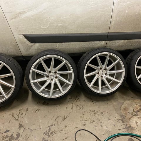 Siitä imazit jokka menee aika monen auton alle muutettavan jaon takia kumit on loppusuoralla sais vaihtaa. Vanteet oikeenki näppärässä kunnossa on suorat ja kanttari iskeymiä ei oo muutaku yks pieni etusessa. Vanteista sen verran että etuset on 8.5 leveet ja takaset 9.5 et35 jokasessa.