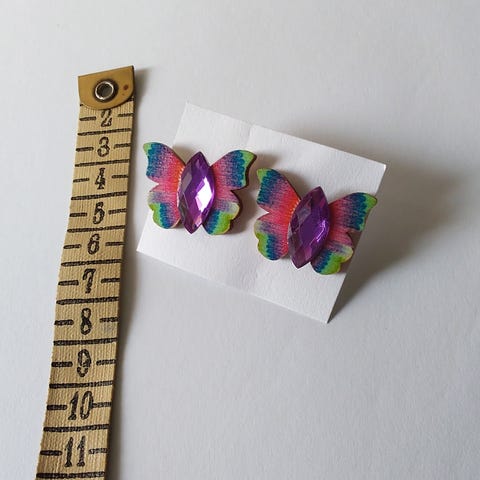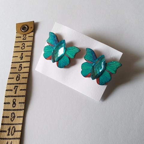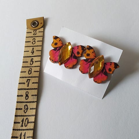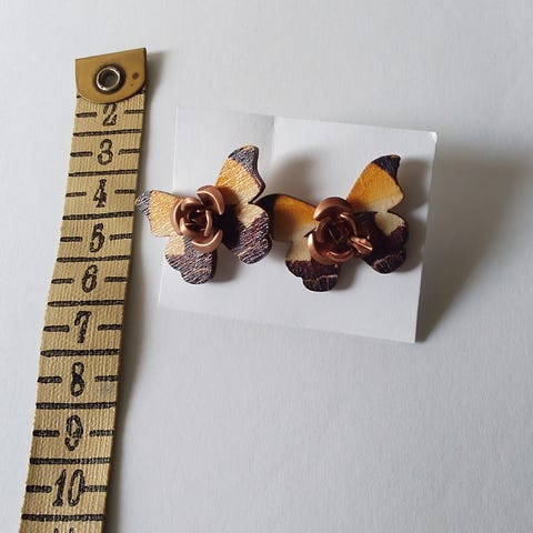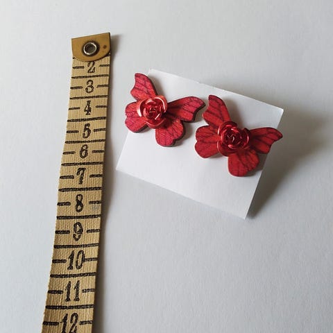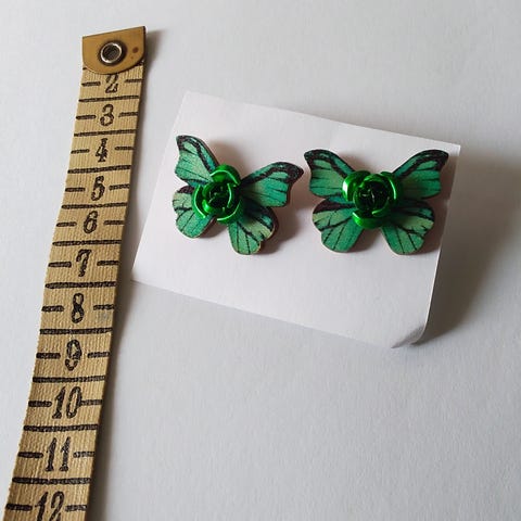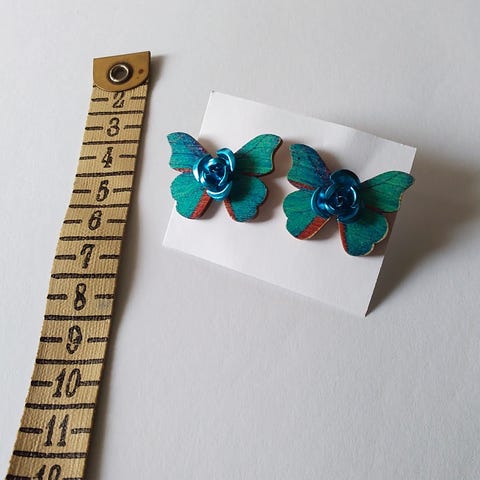 Korvakorut napit , puuta , hopeoitu piikki ja muovilukko.