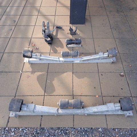 Omarakennettu jämäkkä ranturi, vetokita, käsivinssi, nokkapyörä, leveät venetelat, keinuteli takana, umpirautaa akseli, ilmaa pitävät isot pyörät. Sopii noin 4-5 m. Irtovalosarjalla voi vetää omaan rantaan.