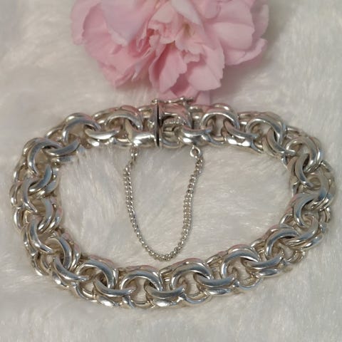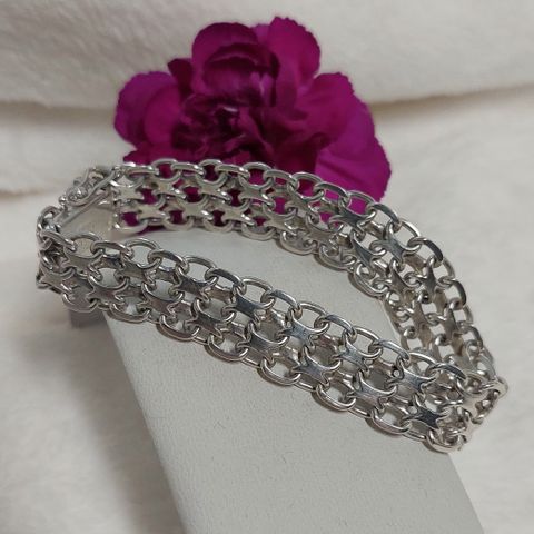 Ruotsalaisen NSE Guldvaru Aktiebolagin hopeinen x-lenkki ranneketju vuodelta 1971.