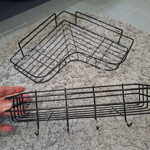 Metallinen hylly suihkukaapin päälle laitettava.