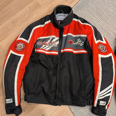 Myydään siisti, ehjä moottoripyörä ajotakki Yoko. Sopii myös mopoilijalle lämpimäksi ajotakiksi. Koko L. Selkäsuoja, olkapääsuojat ja kyynärpääsuojat sekä käyttämätön lämpövuori. Sivussa helmassa säätö tarroilla.