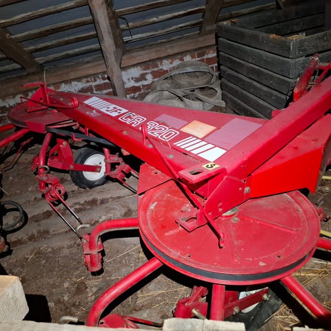 Toimiva JF merkkinen haravapöyhin/ karhotin, säilytetty sisätiloissa, siisti ikäisekseen, nivelakseli mukaan.