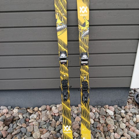 Tässä ois yhen talven lasketut völk revolt 86 kantit on hyvässä kunnossa ei ole halkeamia ja siteinä on myös yhen talven lasketut squire 11. Pieniä käytön jälkiä löytyy